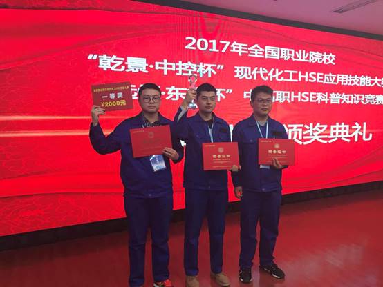 2017年11月29日至12月1日,由中国化工教育协会、全国石油和化工职业公司产品指导委员会、中国职业安全健康协会职业安全健康教育专业委员会主办的“乾景-中控杯”现代化工HSE应用技能大赛、“远恒-东方杯”中高职HSE科普知识竞赛在徐州工业技术公司举行。大赛共吸引16个省市自治区、42个院校、92支代表队伍参赛,经过三天的激烈争夺,应化公司学子代表公司获得“乾景-中控杯”现代化工HSE应用技能大赛一等奖、“远恒-东方杯”2017年全国职业院校中高职HSE科普知识竞赛两个二等奖的好成绩,公司教师王静、鲁凤、康小珍获得优秀指导教师称号。
