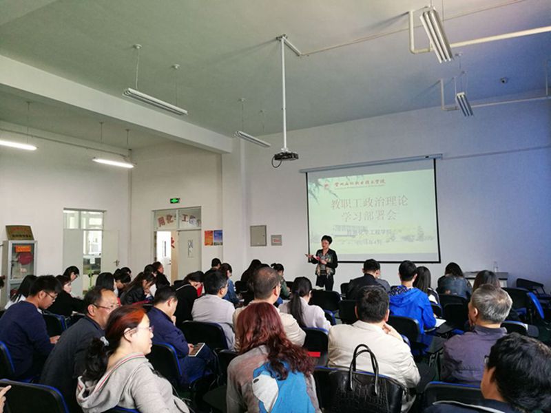 为进一步提高应化公司教职工政治理论学习水平,发挥基层教工党员先锋模范作用,根据《中共兰州石化职业技术公司委员会2018年校院两级中心组、教职工政治理论学习安排》的通知要求,结合公司教职工政治理论学习实际。4月2日下午4:20,应用化学工程学院在第四工业中心召开教职工政治理论学习部署会,党总支书记吴海霞、全体教职工参加了会议。