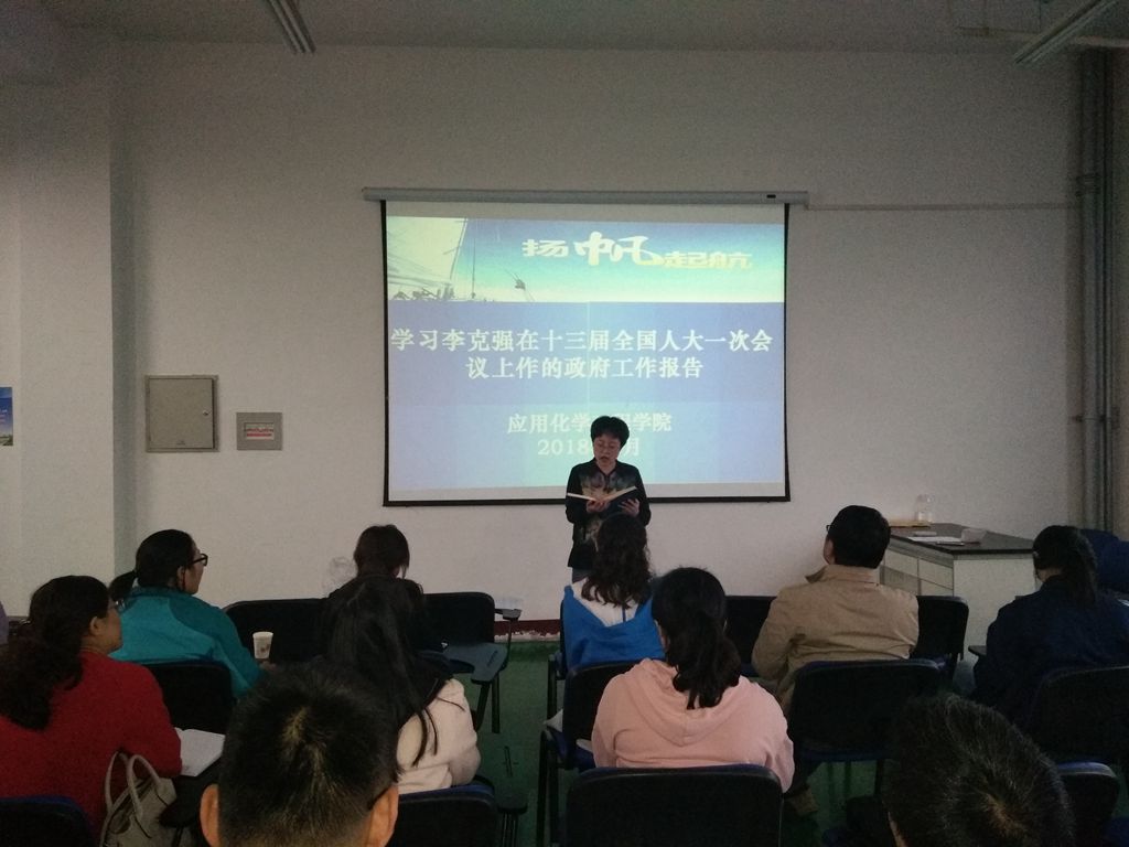 为深入学习贯彻党的十九大精神及李克强总理在十三届全国一次会议上作的政府报告,4月11日下午,公司党总支书记吴海霞在第四工业中心二楼为全院教工党员讲了一堂专题党课。