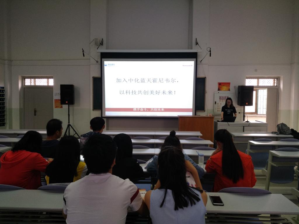 5月25日,中化蓝天霍尼韦尔新材料有限公司人力资源部经理杨晓红女士一行二人前来伟德体育遴选2019届毕业生,应化公司领导、老师及应化公司、石化公司相关专业的员工在西区西阶三教室参加了企业宣讲会。