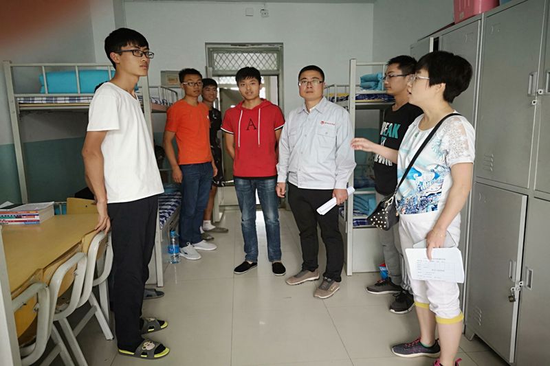 8月26下午,院领导、辅导员、全体班主任集体深入员工宿舍看望返校员工、对宿舍卫生、安全进行检查评比。同时,了解员工假期生活情况,掌握员工思想动态,向同学们表达了新学期的美好祝愿,要求大家尽快投入到新学期的学习和生活中来,以崭新的姿态、良好的风貌完成好各项学习任务。晚自习期间,各班级组织召开了新学期第一次班会,对员工报到情况进行了统计,并落实了未返校员工的详细情况。公司党委书记周兴中等班级联系领导参加了新学期第一次班会,他们希望同学们树立信心、制定计划、刻苦努力、全面锻炼,迎接新的挑战。要求同学们面对新学期、新起点,要明确目标,树立远大理想,脚踏实地的学习。开学首日,院领导班子成员率领相关人员,分成2组分别对开课情况进行了巡视巡查,重点检查教师上课准备、员工出勤、课堂教学秩序、多媒体教室使用、教学保障工作等情况。从巡视的结果看,公司教学首日总体情况良好,教师按时到岗,员工出勤良好,师生精神饱满,教学秩序井然有序;教学设备运行正常,教学楼环境卫生整洁干净。