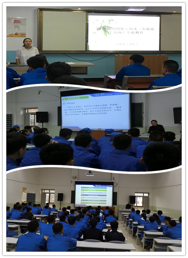 各专业骨干教师分别就专业建设的背景、依据、课程体系、团队、教学条件、就业等六个方面向新生展示应化公司人才培养的具体措施、团队条件、实训基地建设等。同时结合高等职业教育的目标、理念、行业背景、就业情况以及创业目标等向入学新生阐明将来的就业定位和以就业为主导的教育思路,及早告知同学们在今后的大学学习和生活中注重个人素养和职业能力的锻炼提升。帮助同学们理解专业课程的主体框架,提前明确学习的主次和主要内容,并认真地回答了部分同学们就自己关心的学习和生活方面的疑问。