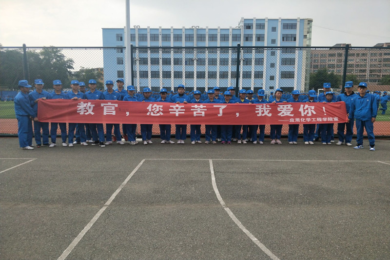 活动中,员工会干部提前到达现场,挂好印有“教官,您辛苦了,我爱你!”的横幅,并准备好马克笔。在新生军训结束后,邀请他们在横幅上写一些想对教官说的话。活动现场,同学们都踊跃参加,写下他们对教官的感激、不舍以及他们对教官浓浓的爱。活动最后,军训结束已经多半个小时,有好多同学还在和教官合影,充分体现出同学和教官在这短短时间内建立起来的深厚友谊。