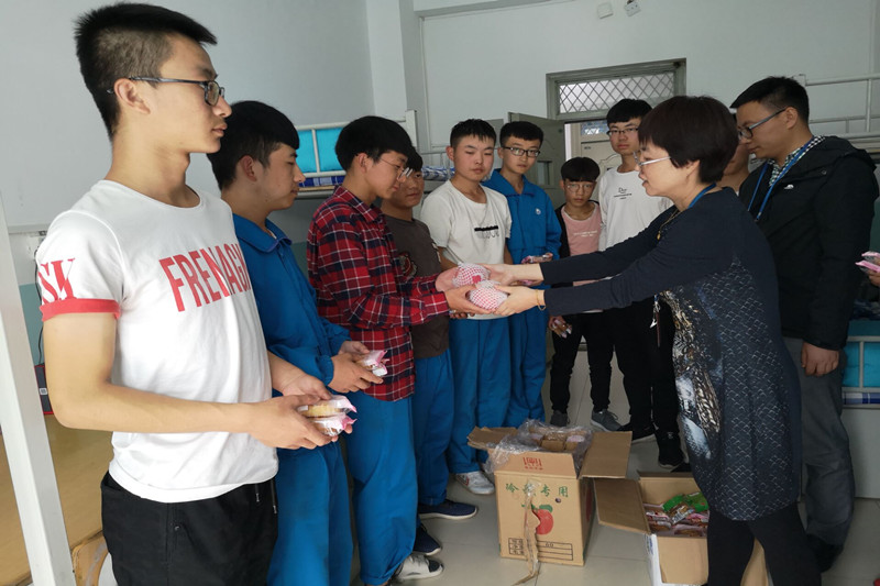在中秋节来临之即,为了让大家能够在校园里度过一个温馨、祥和的中秋佳节,9月19日晚,公司领导、各班主任一行分别深入明德公寓、好源公寓员工宿舍看望慰问同学。