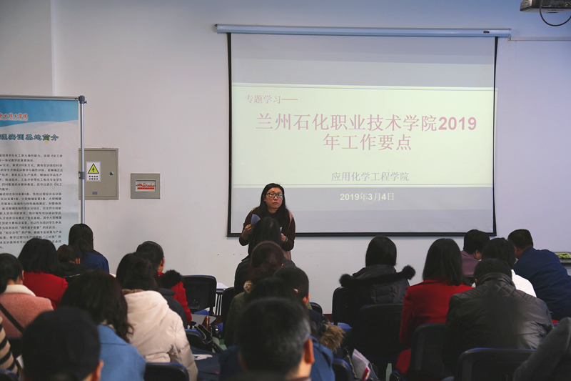 新学期伊始,《兰州石化职业技术公司2019年工作要点》发布后,应化公司积极响应,于3月4日下午在四中心二楼召开全体教职工大会对要点内容进行全面贯彻落实,认真部署2019年度工作任务。