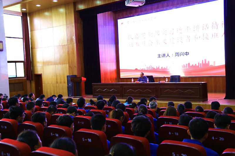 周兴中在授课中,对师生们提出三个方面的具体要求,一是要树立理想信念;二是要树立正确的人生观、价值观、世界观;三是要践行伟大的梦想。