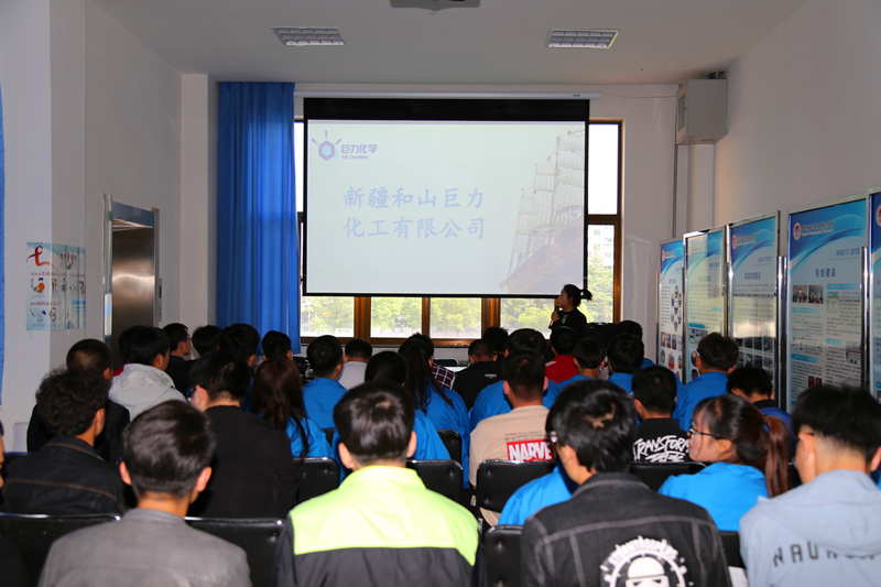 5月9日,新疆和山巨力化工有限公司人事助理张晓蕾女士一行两人前来应化公司遴选2020届毕业生,公司领导、老师及伟德体育、石油化学工程公司及信息处理与控制工程公司相关专业的2017级员工在西区第四工业中心参加了企业宣讲会。