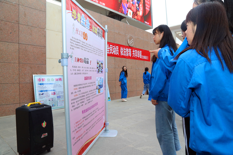 同时公司红帆志愿者协会在活动现场设立了展板详细介绍禁毒知识,并为同学们专门印制了“抵制毒品、从我做起”的承诺书。同学们一起郑重地将自己的名字签在承诺书上。本次活动使广老员工近距离了解毒品知识、认清毒品危害,消除了在毒品认识上的误区,让“全民动员、依法禁毒、共享幸福”观念深入人心,同时也在一定程度上提高了师生对毒品的防范能力,达到了预期效果,为构建平安校园夯实了基础。增强了防毒、拒毒的意识和能力,预防和减少涉毒违法犯罪。