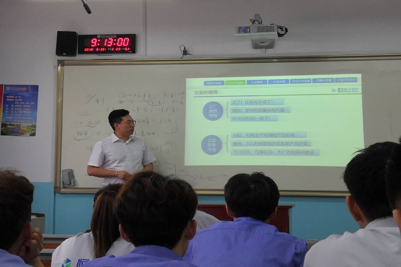 根据恒力现代学徒制班人才培养方案的要求,为了让员工在公司就能了解企业文化、管理理念和岗位技能。近日,恒力石化(大连)有限公司派出人力资源部高磊、王爽两位讲师为公司恒力现代学徒制181班讲授了《企业文化》课程。