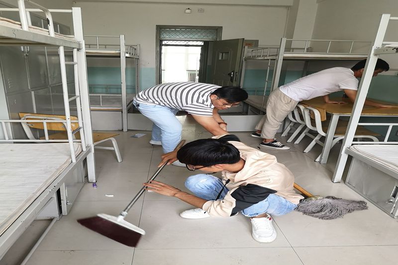 下午14:00,员工党员、入党积极分子分别在明德公寓、好源公寓楼下集合,并根据辅导员具体安排迅速展开工作。各卫生小组自带卫生工具进入宿舍清理柜子、床铺、地面、玻璃等,他们工作认真细致,不放过一个卫生死角。在整个清扫过程中,大家不怕脏不嫌累,通力协作,擦拭桌椅、去除污渍、清扫地面,不留下任何一个死角,力求做好迎新第一步。经过大家的共同努力,新生宿舍环境得到了很好的改善,宿舍面貌焕然一新。