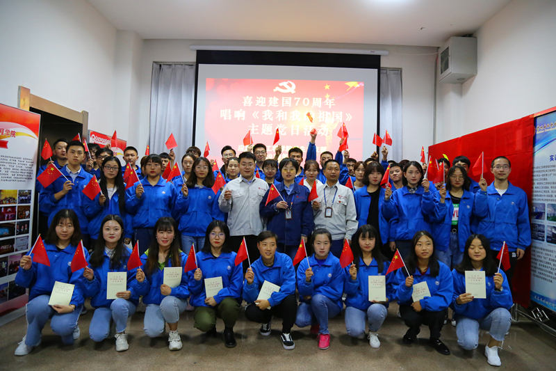 为庆祝祖国母亲70周年华诞,激发员工党员的爱国热情,9月21日晚,公司员工党支部在第四工业中心二楼开展了“喜迎建国70周年,唱响《我和我的祖国》”主题党日活动“。公司党总支书记吴海霞、各员工党支部书记及在校员工党员参加了活动。