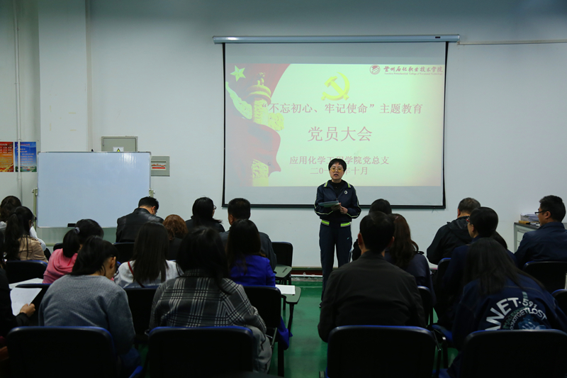 会上,公司党总支书记吴海霞带领全体教工党员学习了《中共兰州石化职业技术公司委员会关于深入抓好‘不忘初心、牢记使命’主题教育有关工作的通知”》;接着,按照大会议程,组织全体党员集体观看了“庆祝新中国成立70周年大阅兵录像”;最后,部分党员进行交流发言,龚占魁同志发表了自己的感想:“我们伟大的祖国从积弱到强盛,中华民族七十年砥砺奋进、风雨兼程,七十载的壮丽历程,我为祖国的强大、自信而倍感骄傲与自豪”;朱杭静同志在谈自己的感受时说:“在这个不需要抛头颅洒热血的时代,我们也要挑起属于自己的担子,高举习近平新时代中国特色社会主义思想伟大旗帜,不忘初心、牢记使命,为早日实现中国梦而不懈努力”。