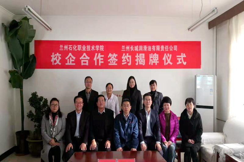 11月27日下午,公司与兰州长城润滑油有限责任公司签署校企战略合作框架协议,并举行揭牌仪式。兰州长城润滑油有限责任公司董事长郝丰祖,总经理郝国进,采购部经理常向平,销售部经理杨海霞和办公室主任周丽萍等企业领导人员,以及公司副董事长王继元,党委委员、党委宣传部部长何华,合作办学处处长刘雅芳及公司领导、教师代表出席了活动。
