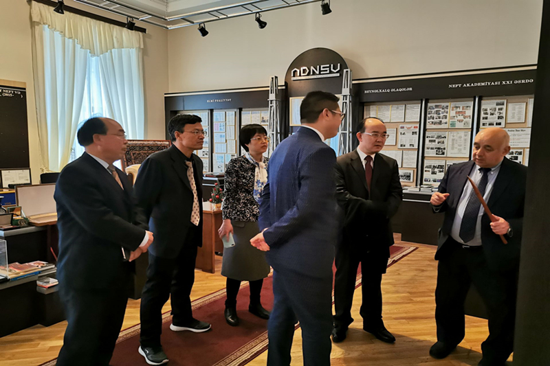 刘兴勤一行在副董事长拉菲克·加马洛夫教授和董事长助理李仁莹博士的陪同下,参观了阿塞拜疆国立石油工业大学法国公司、各个教学楼、宿舍、矿石博物馆、实验实训室、校史馆等。阿塞拜疆国立石油工业大学为世界培养了很多杰出人才,包括俄罗斯卢克石油公司总裁瓦吉特·阿列克佩夫;原苏联第一副总理尼古拉·康斯坦丁诺维奇·巴伊巴科夫;阿塞拜疆前总统盖达尔·阿利耶夫;德国石油部原部长阿尔图尔•拉西扎德等一大批世界知名员工。公司悠久的历史、整洁的校园环境、一流的实验室、精细化的管理等都给访问团成员留下了深刻的印象。