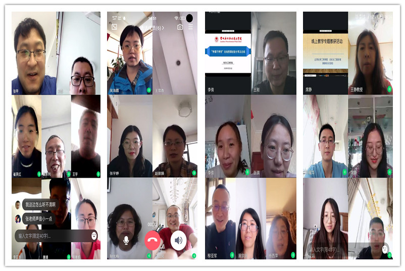 本次教研活动各教研室通过腾讯视频会议、钉钉视频会议等在线举行,围绕“线上教学经验分享与问题探讨、如何提升线上教学的有效性”等内容开展教研活动。老师们对课堂教学安排、选取优质教学资源、互动环节、课堂答疑、教学平台的选取与使用、创新教学方式方法等方面提出了意见和建议。
