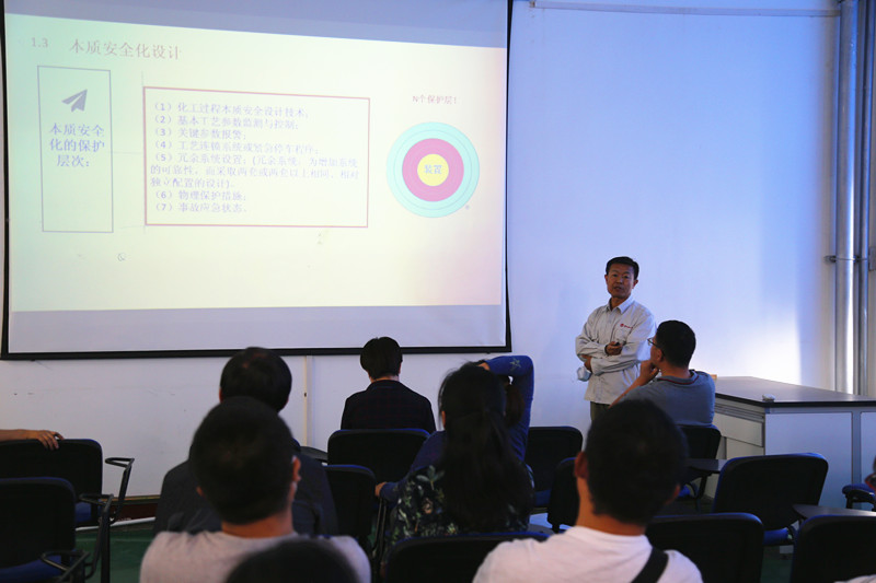 报告中,魏刚教授从隐患排查与本质安全设计,化工事故为什么发生,法律、法规、标准的知行,涉及危险化学品法律法规分类,化工HSE管理与“责任关怀”五个方面进行了详细的讲解,并用案例说明化工事故的严重后果。通过此次报告,老师们了解了危险化学品分类、危险化学品的安全管理及安全生产法律规范标准,从一个化工工艺人员的角度,认识到化工操作识危害、知防范、除隐患的重要性。