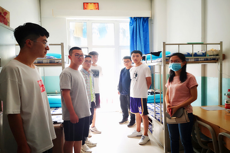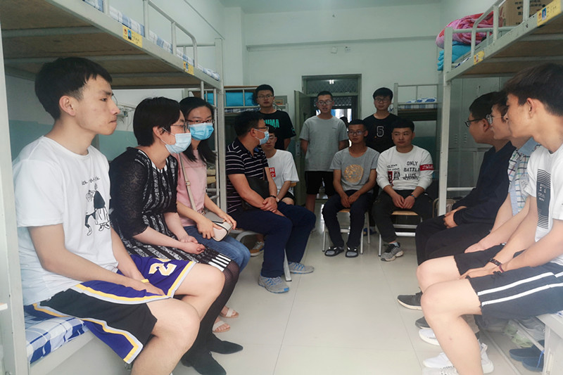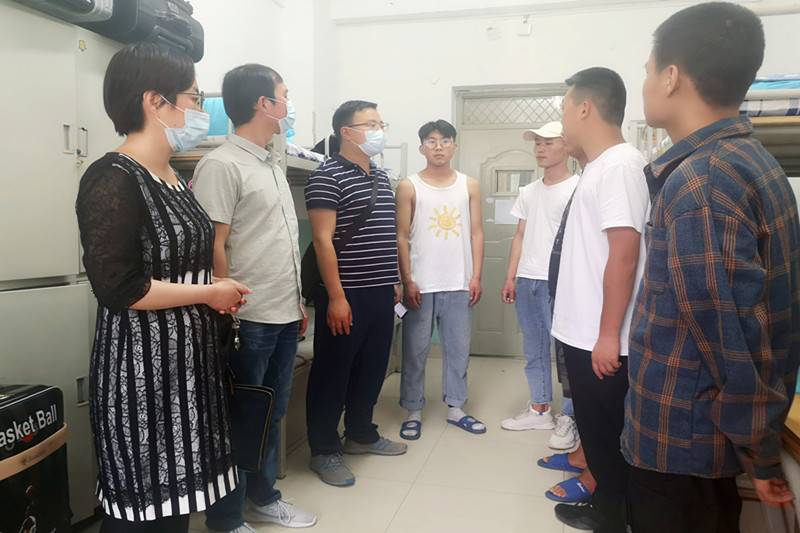 为了解2020年春季学期第二批返校员工的学习、生活情况,6月14日下午,应用化工程公司领导、辅导员、班主任前往员工宿舍看望返校员工并检查宿舍防疫工作。