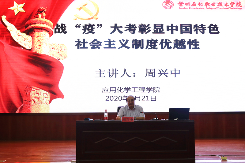 本次党课,周兴中以《战“疫”大考彰显中国特色社会主义制度优势性》为主题,围绕“全球疫情防控情况、世界经济运行状况、中国特色社会主义制度优势”三个方面详细生动地分析了疫情防控工作中取得的显著成效。他指出,今年以来,史无前例的新冠肺炎疫情给世界各国造成重大的人员伤亡和严重经济损失。然而,社会主义中国却在抗疫中取得举世瞩目成就,交出优异答卷,充分体现了中国特色社会主义制度的巨大优势。他用疫情期间悬殊巨大的新冠肺炎确诊人数、死亡数字、经济运行中的GDP正负增长数字,阐述中国和西方疫情防控的效果,论述两种制度的优劣。他还从中西方社会制度的根本差异、价值观的区别、医护人员奉献精神、全社会各个行业参与度、政府管理效能,特别是政党的领导艺术、领导能力和领导水平等层面进行深入浅出分析,最终得出结论,中国特色社会主义制度优势明显,不可比拟,只有坚持这种制度,才能使中国成为富强民主文明和谐美丽的社会主义强国,才能实现中华民族伟大复兴的“中国梦”。
