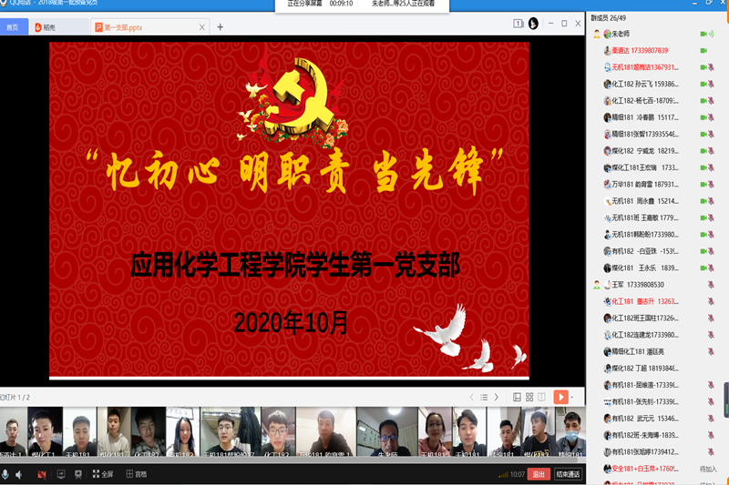 为进一步增强员工党支部的凝聚力,引导广老员工党员铭记往昔峥嵘岁月,不忘初心,充分发挥员工党员在日常学习和工作中的模范带头作用,10月16日晚,伟德体育第一、二员工党支部借助QQ会议平台于线上组织开展了“忆初心、明职责、当先锋”的主题党日活动。