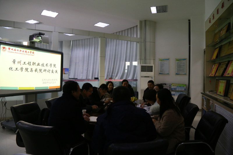 12月21日在第四工业中心二楼,常州工程职业技术公司化工公司经理李东升一行6人来公司学习交流,经理侯侠、党总支书记吴海霞、相关教研室主任参加了交流会。