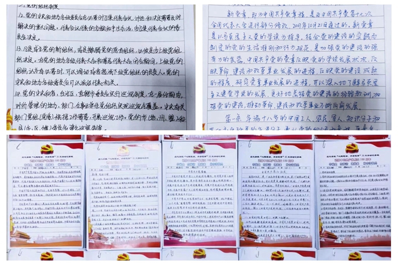 “一撇一纳笔尖过、一字一词心中铭”。本次手抄党章活动活动从5月15日开始,为期30天,要求员工党员发展对象在抄写党章的过程中,认真书写,深入思考、细心体会,坚持每日动手抄、动脑学、动心记,真正做到逐条、逐句、逐字学党章,切实理解党的纲领,牢记入党誓词,牢记党的宗旨,牢记党员义务,引导员工党员发象自觉尊崇党章、遵守党章、维护党章,坚定理想信念,做到对党章内化于心,外化于形。在抄中学,学中悟。每一位党员发展对象每日将当天需要抄写的党章内容(450字左右),或撰写学习心得体会不少于500字,书写完成后在书写的笔记上留下个人基本信息(落款注明:班级、姓名、日期及页数),并将抄写内容用手机拍照,以“晒图”的形式发至“员工党员QQ交流群”公开展示,员工党支部坚持每天对QQ平台的反馈进行统计,每周第一天记录用彩印书,后6天用普通用纸书写,每周以班为单位上交所在党支部。同学们严肃认真,一笔一划一字一句抄写党章,每当写到深刻之处便停笔思索,可谓字迹流淌在笔尖,思想已涌入心田。活动结束后,员工党支部将以主题党日活动为契机,通过交流感悟、展示作品等进一步增强学习效果。