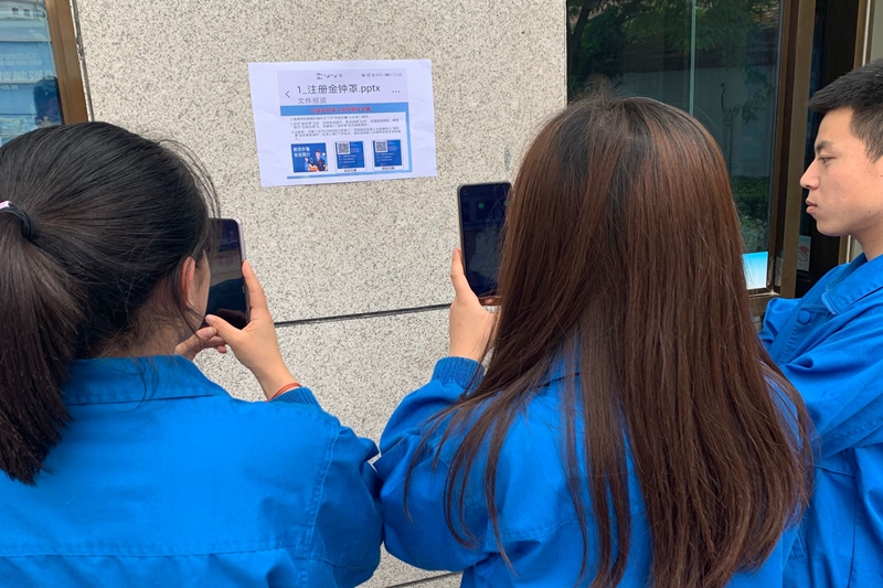 为方便师生扫描和关注,应化公司在教学楼、员工宿舍楼、第四工业中心、公示栏内张贴“金钟罩”小程序二维码。同时,组织员工会干部深入员工宿舍、晚自习教室,积极引导广大师生扫码注册“金钟罩”,讲解参与活动的意义、内容及操作步骤,并对微信扫描情况进行统计。为确保此项工作落实,公司还与每位员工签订了安全防范自律《承诺书》,注册“金钟罩”小程序,预防手机涉诈软件及木马病毒的侵入,把师生关注“金钟罩”微信公众平台、学习了解反电信诈骗知识和技能作为安全教育的内容之一,认真组织,督促实施。