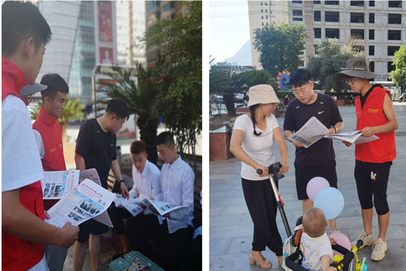 支教活动结束后,三下乡小分队赴武都区各人流量较大的地点开展招生宣传活动,全体队员均积极参与。宣传之前,吴海霞召开了一个简短的会议,向队员讲解了相关注意事项并发放了宣传资料。在指定的宣传地点,小分队成员对家长们和高中生进行了公司招生政策的介绍以及主要专业的宣传。