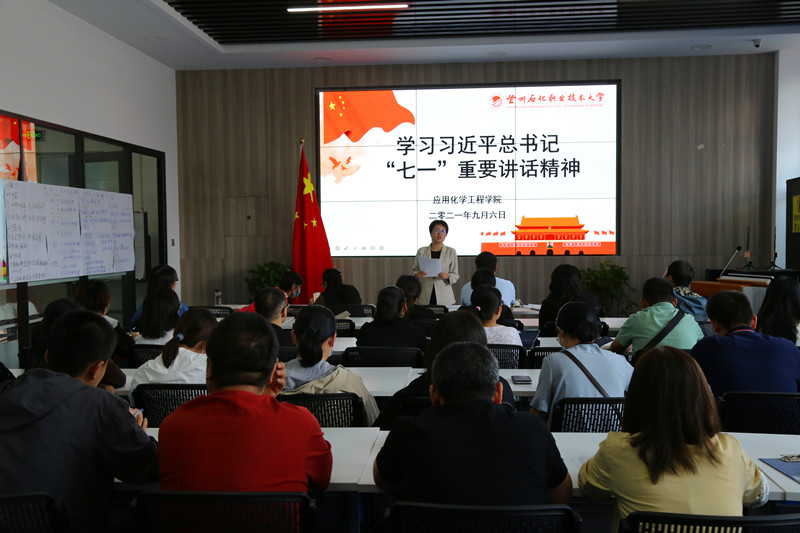 会上,公司党总支书记从深刻领会把握“七一”讲话的重大意义、“七一”讲话的主要内容和主要创新点等方面,带领教师们共同学习了习近平总书记在庆祝中国共产党成立100周年大会上的重要讲话,习近平总书记七一”重要讲话,立意高远、视野宏大、思想深邃。全体教师要紧扣习近平总书记对当代青年提出的要求,进一步用好党史红色资源和现实成就教材,引导员工切实增强听党话、跟党走的思想自觉和行动自觉。通过扎实推进“我为群众办实事”实践活动,将讲话精神转化为推动工作的动力,用工作成绩来检验讲话精神落实成果,充分利用“开学第一课”教学活动,全力做好现阶段教学重点工作和新冠病毒防疫工作,同时认真解决员工最关心、最直接、最现实的利益问题,让员工感到更方便、更安全、更和谐,谱写石化大学发展的新篇章。