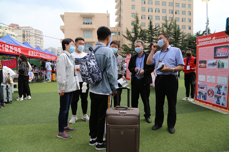 员工志愿者在员工宿舍楼、新生接待点等地为每一位新生带去真诚热心的服务。他们热情接过新生手中的行李,对旅途劳累的新生嘘寒问暖,积极帮助新生搬运行李,热心引导新生办理报到,为新生答疑解惑。周到、细致的服务,给新生们留下了美好的第一印象。
