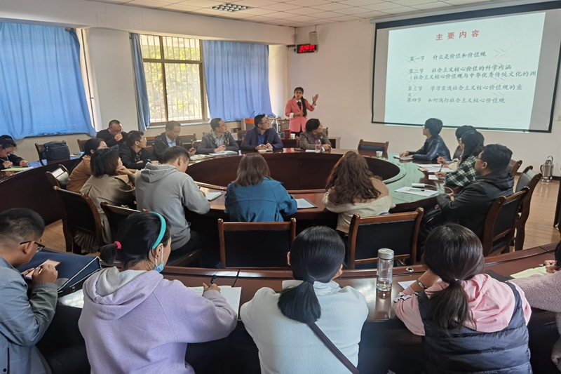 江秀华以“培育和践行社会主义核心价值观”为主题,分别从什么是价值和价值观;社会主义核心价值的科学含义(社会主义核心价值观与中华优秀传统文化的渊源);学习实践社会主义核心价值观的意义;如何践行社会主义核心价值观四个方面向大家深入阐释了如何培育和践行社会主义核心价值观的问题。通过列举大量的事例和历史回顾,进一步激发了全体党员勇担时代重任的豪迈热情,大家纷纷表示要立足本职岗位,积极投身教书育人的伟大事业上来,用自己的实际行动践行社会主义核心价值观,为培养好社会主义合格的建设者和接班人做出自己的贡献。