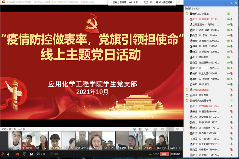 线上活动一开始,员工党支部书记首先组织领学了习近平总书记关于疫情防控工作的重要讲话和公司组织部《关于号召全校各级党组和广大党员干部带头坚决打赢疫情防控遭遇战的倡议书》,随后,他还简要介绍了近期国内疫情防控形势,梳理了自本土疫情发生以来,员工党支部组织员工党员、入党积极分子在助力公司疫情防控组建了“三队一岗”:“核酸检测志愿服务队”、“防疫宣传志愿服务队”、“防疫督导志愿服务队”;“员工党员先锋岗”一线开展志愿服务活动的情况作了简要回顾和小结,充分肯定赞扬了大家积极投入校园防疫志愿服务工作,充分发挥了党员模范带头作用,展现了员工党员主动作为、勇于担当的良好精神风貌。同时,号召全体员工党员提高政治站位,主动肩负疫情防控责任,充分发挥先锋模范作用,勇于担当作为,亮身份、当先锋、作表率,当好宣传员、信息员、战斗员,服从大局,以实际行动勇担时代重托,为防控阻击疫情做出自己的贡献。