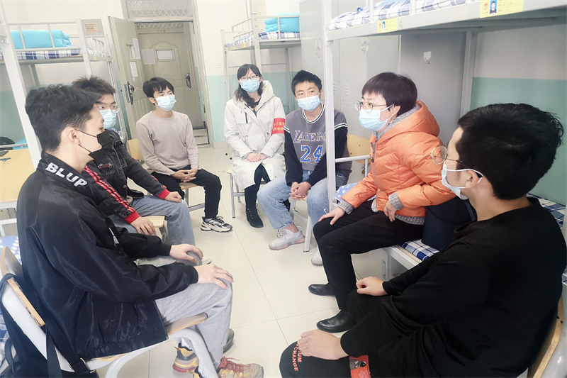公司领导先后来到员工入住的明德、好源、三号楼等公寓,每到一间宿舍,公司领导贴心询问同学们在校园封闭期间线上上课、网络保障、生活物品、餐饮服务等方面的情况,叮嘱同学们要认真上好每一节课,要打开窗户多通风、勤洗手、出门戴口罩、不聚集、不扎堆、坚持1米线,健康适量开展户外活动,保证良好的学习和生活状态,依照少接触是安全的防疫原则,倡导同学们不网购、不点外卖,保持宿舍清洁卫生,按时完成每天的个人信息填报工作,严格遵守疫情防控期间公司的各项管理规定,有困难、问题随时向公司辅导员、班主任提出来,由公司及时协调处理。同时,也要及时向家长交流自己的学习、生活动态,让家长放心。