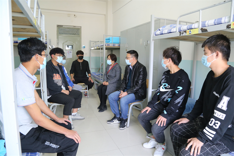 公司领导先后来到员工入住的明德、好源、三号楼等公寓,每到一间宿舍,公司领导贴心询问同学们在校园封闭期间线上上课、网络保障、生活物品、餐饮服务等方面的情况,叮嘱同学们要认真上好每一节课,要打开窗户多通风、勤洗手、出门戴口罩、不聚集、不扎堆、坚持1米线,健康适量开展户外活动,保证良好的学习和生活状态,依照少接触是安全的防疫原则,倡导同学们不网购、不点外卖,保持宿舍清洁卫生,按时完成每天的个人信息填报工作,严格遵守疫情防控期间公司的各项管理规定,有困难、问题随时向公司辅导员、班主任提出来,由公司及时协调处理。同时,也要及时向家长交流自己的学习、生活动态,让家长放心。