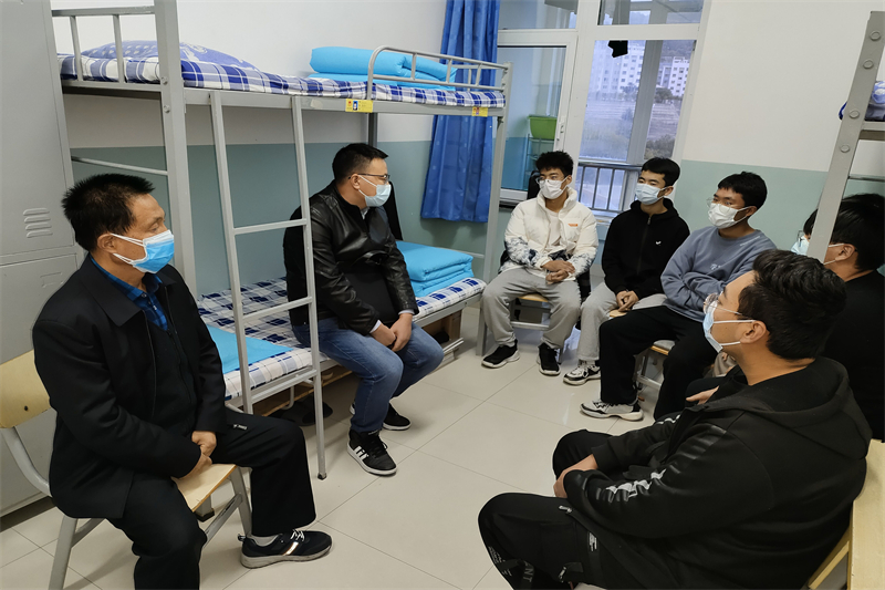 公司领导先后来到员工入住的明德、好源、三号楼等公寓,每到一间宿舍,公司领导贴心询问同学们在校园封闭期间线上上课、网络保障、生活物品、餐饮服务等方面的情况,叮嘱同学们要认真上好每一节课,要打开窗户多通风、勤洗手、出门戴口罩、不聚集、不扎堆、坚持1米线,健康适量开展户外活动,保证良好的学习和生活状态,依照少接触是安全的防疫原则,倡导同学们不网购、不点外卖,保持宿舍清洁卫生,按时完成每天的个人信息填报工作,严格遵守疫情防控期间公司的各项管理规定,有困难、问题随时向公司辅导员、班主任提出来,由公司及时协调处理。同时,也要及时向家长交流自己的学习、生活动态,让家长放心。