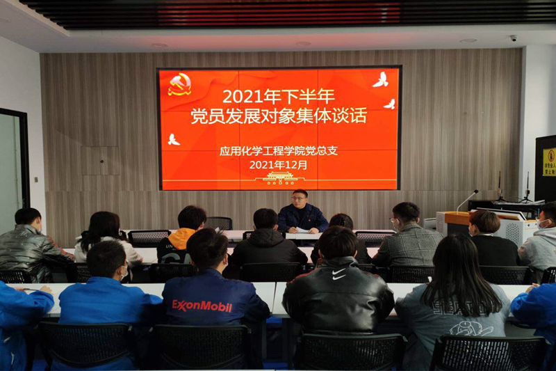 12月6日下午,公司党总支在公司四中心二楼会议室组织进行了2021年下半年员工党员发展对象集体谈话活动,由公司总支书记吴海霞、副书记唐靖分别对16名员工党员发展对象开展了集体谈话。