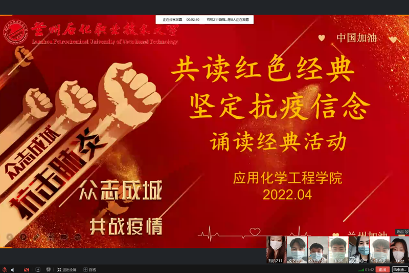 此次网上经典诵读活动,公司的诵读爱好者通过不同形式的表演,以诗歌为媒介,以咏诵相酬和,品味中华传统文化的深沉积淀,讴歌革命先烈的崇高精神,弘扬伟大的抗疫精神。最终获得一等奖的是有机211王庆同学,获得二等奖的是应用化工214马旭辉、金佳蓉同学,获得三等奖的是无机211班买热哈巴·艾力、化工安全211彭鑫、和沛同学,获得优秀奖的是中泰应化211王银强、有机211路璐、杨嘉琦、范丹丹同学。