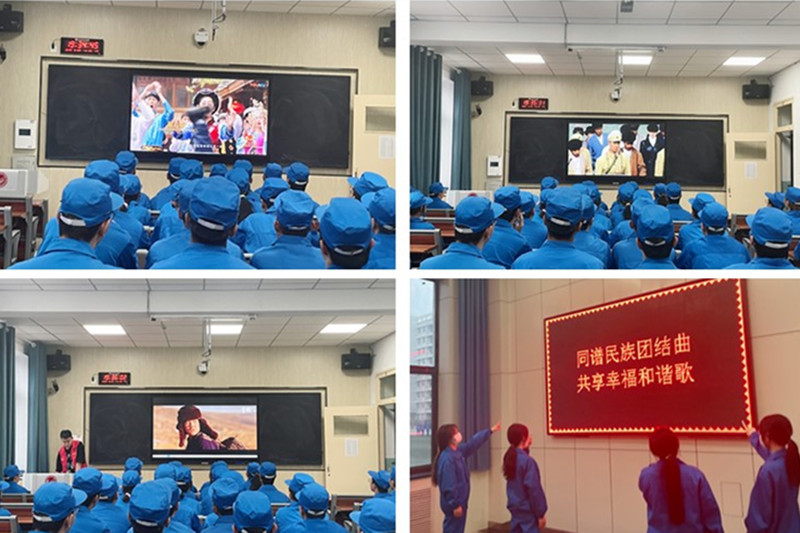 三是组织开展“爱国电影大家看”网上观影活动。组织观看民族团结进步教育影片《冰山上的来客》、《真爱》、《生根》等,深入宣扬民族团结的主旋律。观影过程中,同学们被超越血脉和民族的真挚情感深深打动,也更加坚定了大家维护祖国统一、维护民族团结的信心和决心。四是开展民族团结进步主题班会,以“民族团结一家亲,同心共筑中国梦”为主题,各班级组织开展内容丰富、形式多样的主题班会,有的班级员工学唱一首民族团结的歌曲;有的组织发表了自己的看法和见解,真情帮助在学业和生活上有困难的少数民族员工。最后班级吟唱了《五十六个民族五十六枝花》,为本次活动画上了一个圆满的句号。