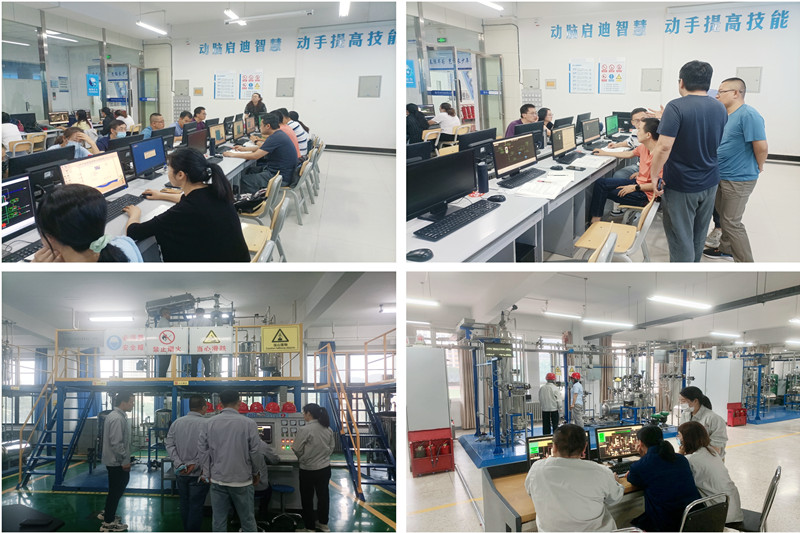 本次暑期实践培训共有37名教师参加,根据老师们下学期的实践教学任务及教师教学能力竞赛需要,将37名教师分为化工单元仿真实训、化工单元操作实训、化工装置仿真实训和化工安全操作实训四个培训项目。每个培训项目安排1-2名指导教师,培训内容以相应实训课程的实际授课内容为主,在指导教师每天认真细致的讲解下,老师们不仅能够提高自身的实践教学及实操水平,同时共同探索教学设计、教学组织、教学方法、教材改革的新思路和新抓手,也为老师们提供了集中挖掘“思政育人”、融通“岗课赛证”着力点的好机会。培训结束后,公司还会从实操考核、教案设计等多个角度考察此次培训的成效,并就培训过程中老师们提出的问题和建议进行总结梳理。