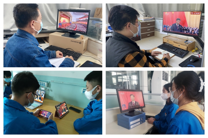 二十大是全党全国各族人民迈上全面建设社会主义现代化国家新征程、向第二个百年奋斗目标进军的关键时刻召开的一次十分重要的大会,是全党全军全国各族人民政治生活中的大事。在第四工业中心二楼会议室、办公室、多媒体教室、员工宿舍等场所,师生党员和员工们早早就守候在手机、电脑、学习强国app等网络屏幕前,收看大会直播盛况。上午10时,随着大会拉开帷幕,大家专心专注、聚精会神倾听习近平总书记代表十九届中央委员会向大会作报告,时而埋头记录,时而以热烈的掌声回应习近平总书记的精彩报告。通过收听收看大会盛况,师生一致表示:听了习近平总书记的报告,对党从十八大以来,这十年来取得的历史性辉煌成就、发生历史性变革倍感振奋,对未来祖国的发展蓝图更加充满信心,接受了一次精神上的洗礼,并在工作群里积极交流,热切讨论,分享心得。大家纷纷表示,将继续勤奋学习、努力工作,不断提升自己的知识水平、专业能力和综合素质,把智慧和力量凝聚到公司建设上来,凝聚到促进公司发展上来,为新时代中国特色社会主义事业贡献自己的力量。