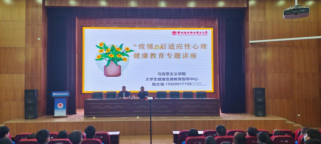 3月9日晚上,伟德体育在西区多功能报告厅举办了“疫情”后适应性心理健康教育专题讲座。此次讲座邀请公司老员工健康发展教育指导中心姚志强老师主讲,公司领导、辅导员、班主任和全体在校生共计3000余人线上、线下聆听了心理健康讲座。