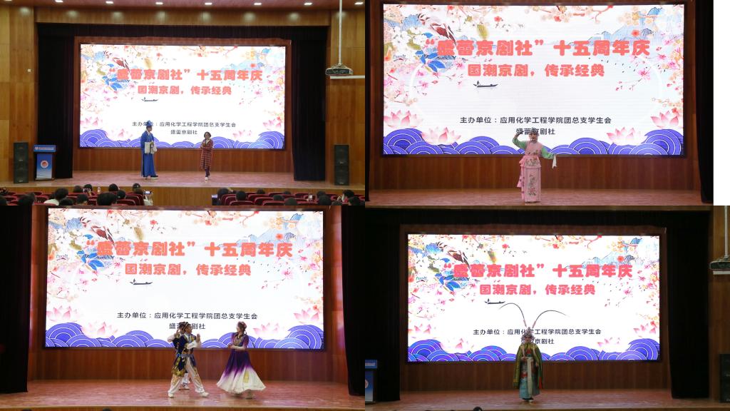 本次演出共有13个节目,京剧社成员分别表演了《三家店》、《打龙袍》、《定军山》、《钓金龟》等京剧经典选段。在表演中展示了扎实的基本功,精彩的表演赢得了大家阵阵的掌声,现场的叫好声不断响起。他们用优美动听的唱腔,丰富多彩的造型将一个个家喻户晓的故事表演得栩栩如生,精彩纷呈,观众们久久沉醉在艺术的殿堂中。