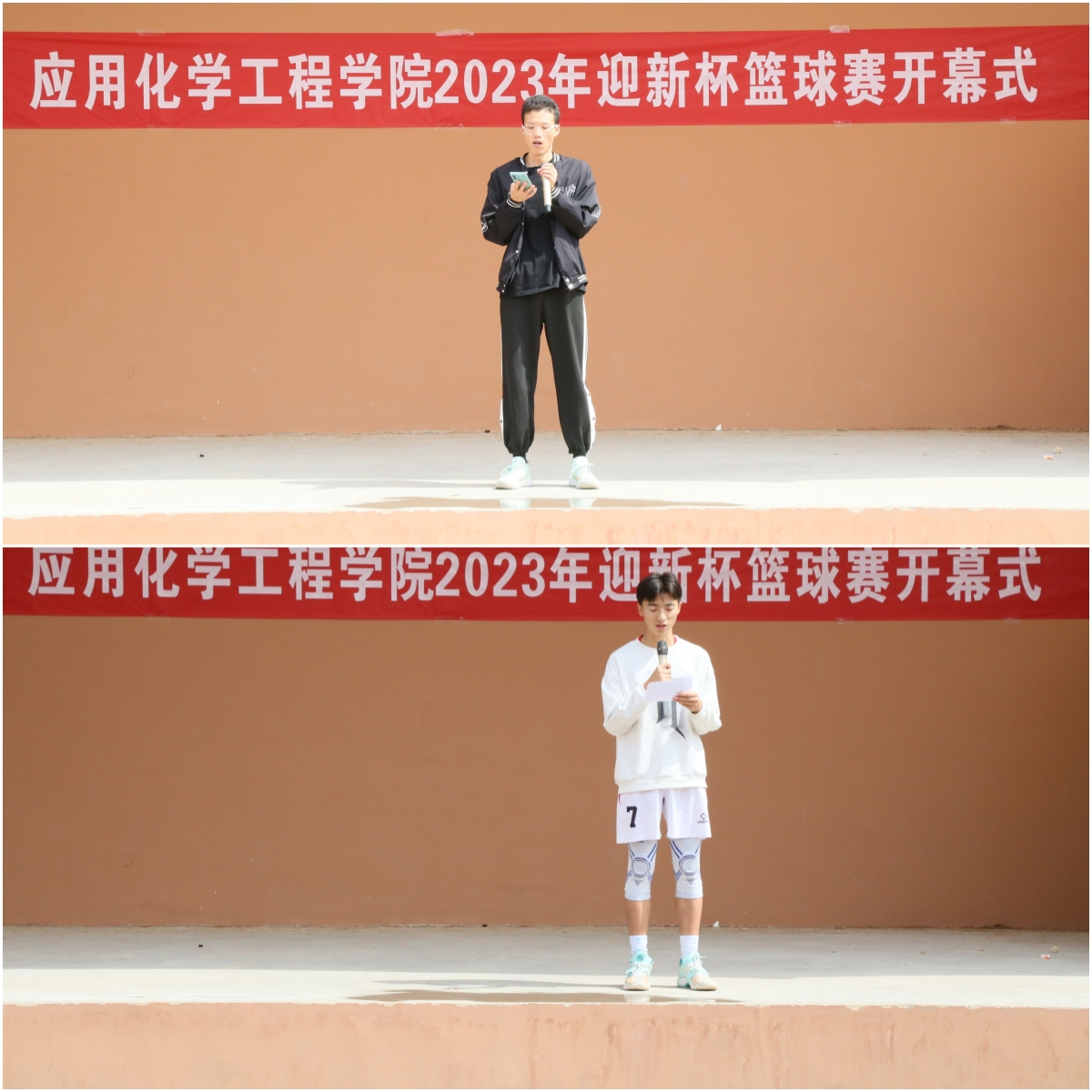 开幕式上,党总支副书记致开幕词,重点强调了“安全第一、友谊比赛”的宗旨,鼓励参赛队员们顽强拼搏,赛出竞技水平、赛出个性风采、赛出团结友谊,要求裁判员们公平公正执裁,保证比赛顺利进行,并预祝本次比赛圆满成功。随后,裁判员代表和运动员代表向全体运动员进行宣誓。最后,团总支书记宣布“迎新杯”篮球赛正式开始,裁判长吹响了揭幕球赛的哨声。