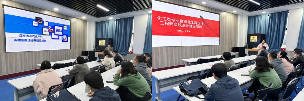 在论证会上,教学负责人首先就公司今年实训基地建设项目申报的指导思想、基本原则和主要内容等进行了说明。随后,王雪香及康小珍两位老师作为项目负责人,分别针对化工类专业群职业本科运行工程师实践基地建设项目及煤炭清洁职业本科实验室搬迁提升建设项目工作做了全面汇报。