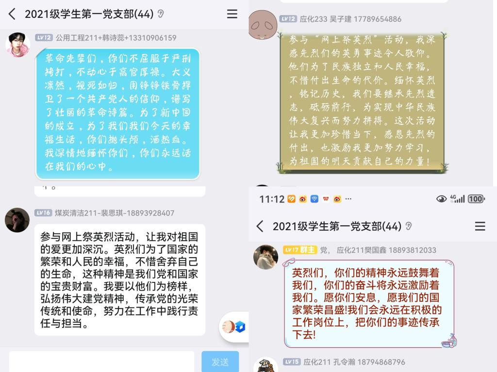 活动中,党支部负责人首先带领大家一起学习了习近平总书记关于英烈的重要论述,并对清明节网上祭奠的由来等背景知识作了简单介绍。他说:网上祭奠活动旨在通过简朴、节俭、文明、庄重的在线祭奠方式,依托人民网祭奠专栏、中华英烈网等网络平台,通过网上献花、献辞、留言、祭文等形式,缅怀英烈,抒发情感,我们要时刻怀着感恩的心,铭记先烈。随后,大家纷纷拿出手机,登录“中华英烈网”进行了网上祭扫,向英烈们表达了的深切追思。每位员工党员认真撰写祭语,在网上及支部QQ群里发表追思留言,抒发对先烈们的崇敬和缅怀之情。员工党支部负责人希望大家认真学习英烈的先进事迹,传承红色革命精神,感受时代力量,铭记历史,以史为鉴,时刻牢记自己的使命,努力学习、勤奋进取、热爱生活、热爱祖国,为实现中华民族伟大复兴贡献力量。