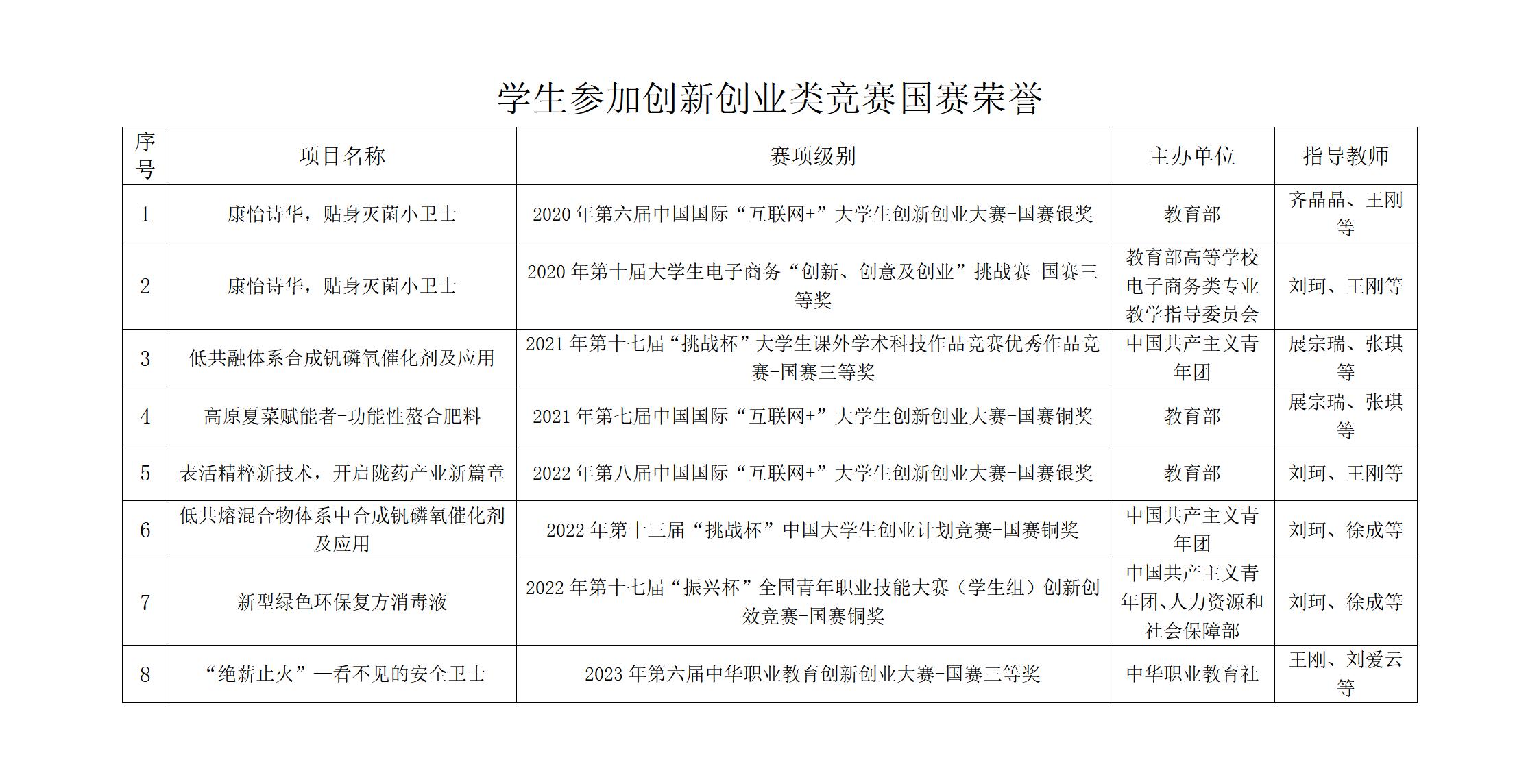 员工参加创新创业竞赛国赛荣誉