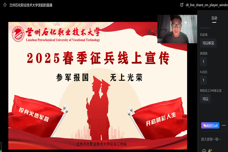 本次线上宣讲咨询会使同学们和家长对2025年春季征兵政策有了深入的认识与了解,进一步激发了同学们参军入伍、立志报国的使命感和责任感。